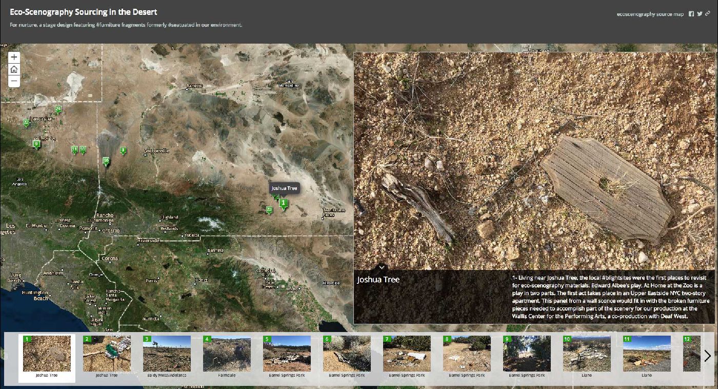 The Wallis & Deaf West Theatre's Co-production of Edward Albee's At Home at the Zoo features the re-use of materials by artist and scenographer Karyl Newman, engaged in building awareness about the issue of illegal dumping through creative processes. Take a tour of what was taken.
